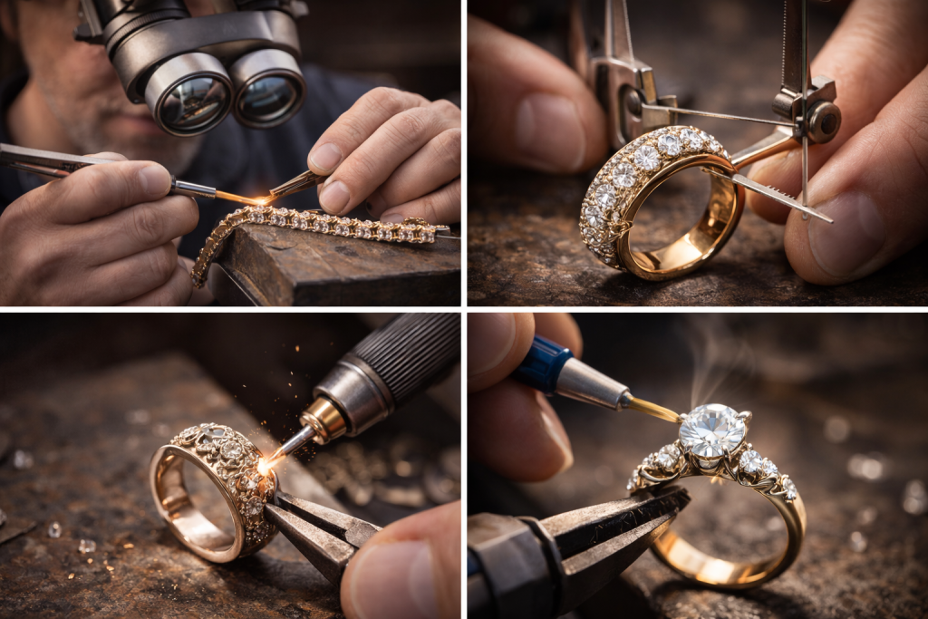 From heirloom restoration to simple ring sizing, we provide meticulous care for your most precious pieces. Fast turnaround and guaranteed craftsmanship.
